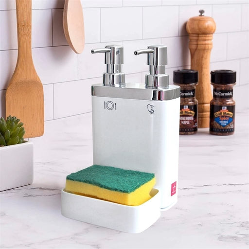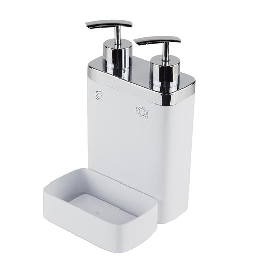 Dispensador con división para jabón y detergente.