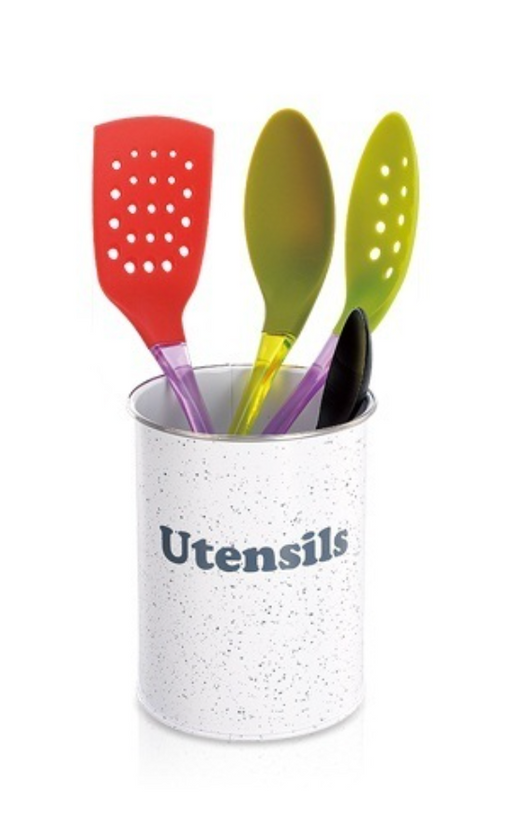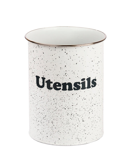 Precio original $540Precio original $540 - Precio original $540Precio original $540Precio actual $340$340,00 - $340Precio actual $340Símil enlozado para utensilios en color blanco e inscripción "UTENSILS" en color gris. Medidas: D.13.5cm x H17cm