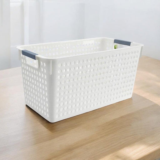 Precio original $340Precio original $340 - Precio original $340Precio original $340Precio actual $170$170,00 - $170Precio actual $170Cesta calada de plástico reforzado con rueditas. Color: Blanco. Medidas: 31.5x20.5x12,5cm