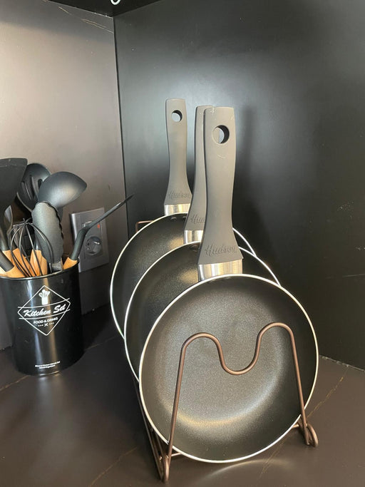 Precio original $580Precio original $580 - Precio original $580Precio original $580Precio actual $370$370,00 - $370Precio actual $370Soporte de tapas y sartenes de metal. Colores: Blanco o Chocolate