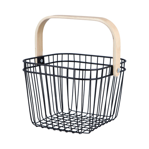 Cesta de Metal con Agarradera de Bambú