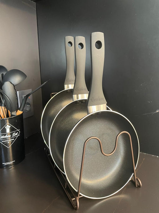 Precio original $580Precio original $580 - Precio original $580Precio original $580Precio actual $370$370,00 - $370Precio actual $370Soporte de tapas y sartenes de metal. Color: Chocolate